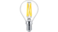Blistave, prozirne LED žarulje tvrtke Philips pružaju efekt predivnog, blistavog svjetla i izuzetno dug vijek trajanja. Ova žarulja predivno izgleda bilo da je uključena ili isključena i savršeno odgovara ukrasnim rasvjetnim tijelima s malim (E14) grlima.