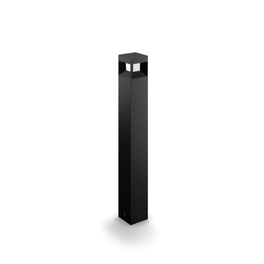 Vanjska LED stupna svjetiljka Philips Parterre crne boje ima viseću svjetlosnu kocku u izdržljivom ležaju od lijevanog aluminija. Domišljat dizajn emitira snopove raspršenog toplog bijelog svjetla po stazama i otvorenim vanjskim područjima.